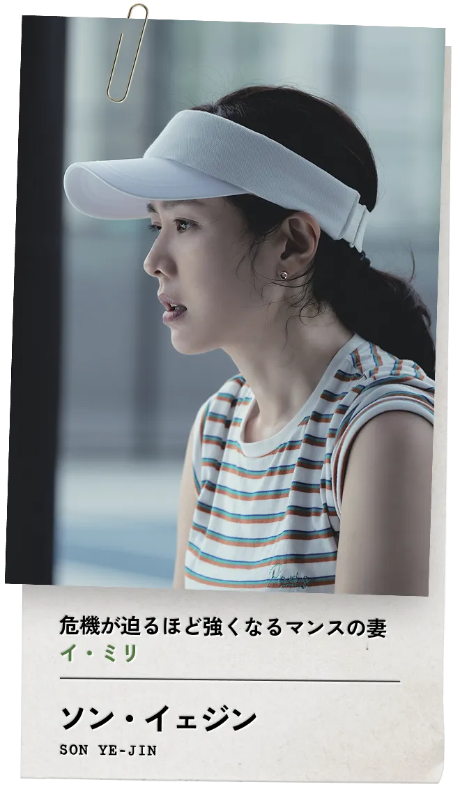 世界的な大ヒットドラマ「愛の不時着」で知られるソン・イェジンは、本作で誰よりも前向きかつ理性的に危機に対処するミリ役でイ・ビョンホンと初共演した。「ミリは楽天的な性格で、常に笑顔を絶やさない。ミリなら、この状況でどうしただろうかと考えながら演技に臨んだ」と語るソン・イェジンは、徹底してキャラクターになりきった姿で深い印象を残している。